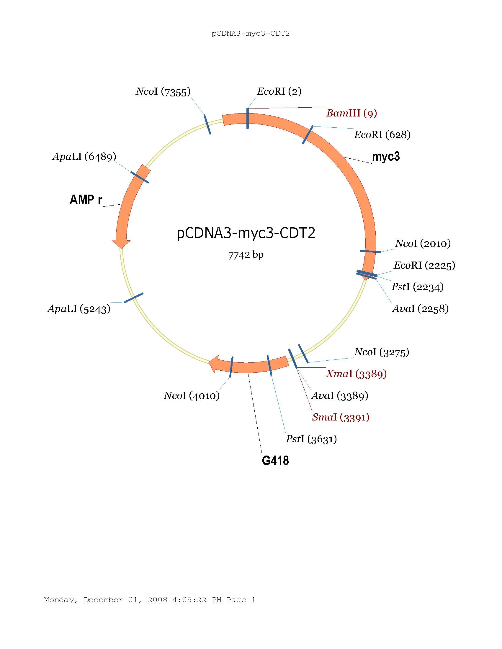 pcDNA3-myc3-CDT2