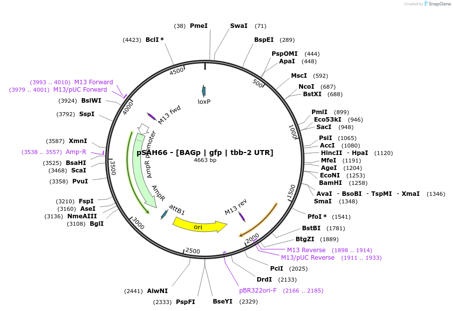 pSAH66 - [BAGp | gfp | tbb-2 UTR]