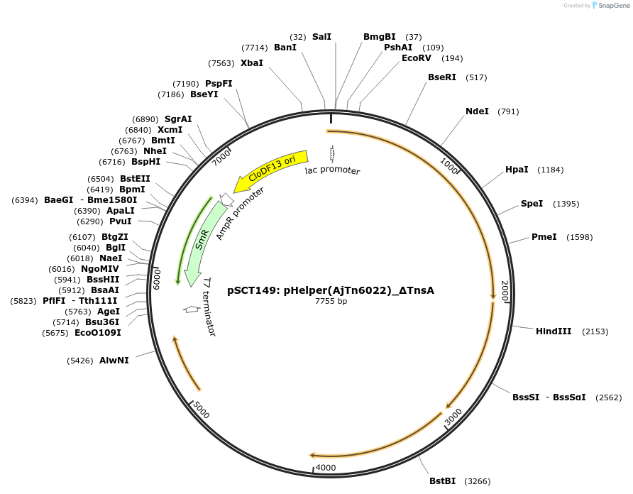 pSCT149: pHelper(AjTn6022)_ΔTnsA