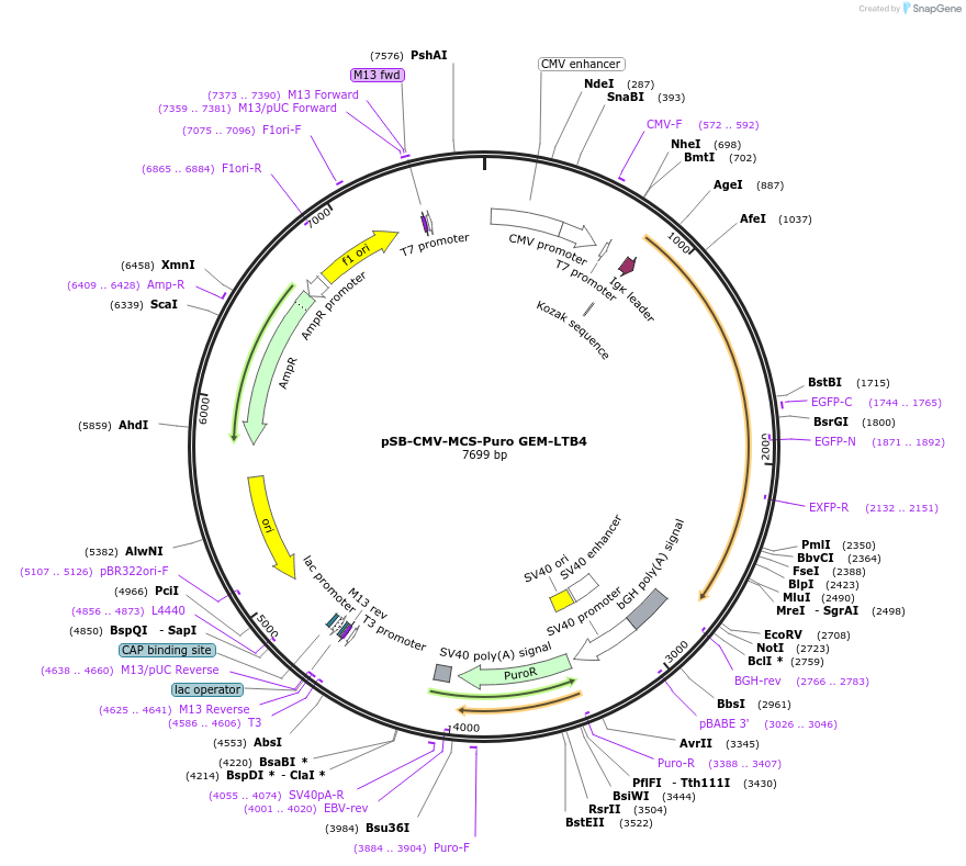 pSB-CMV-MCS-Puro GEM-LTB4 Sequences (1)