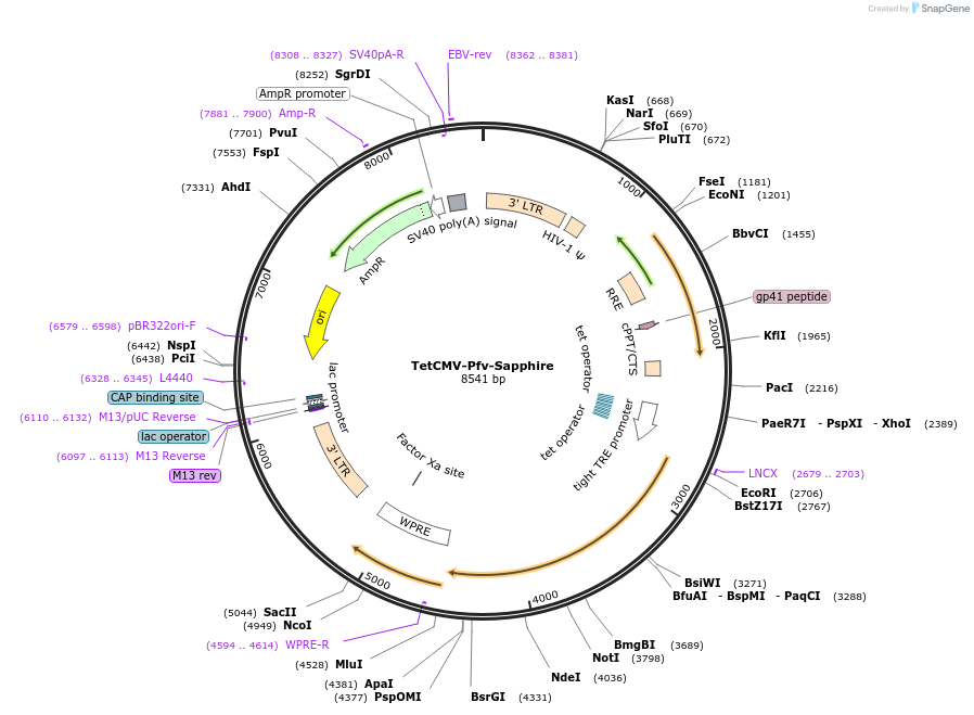 PurposeMammalian lentiviral vector for the expression of the Sapphire-tagged 40nm GEM under the doxycycline-inducible promoter.