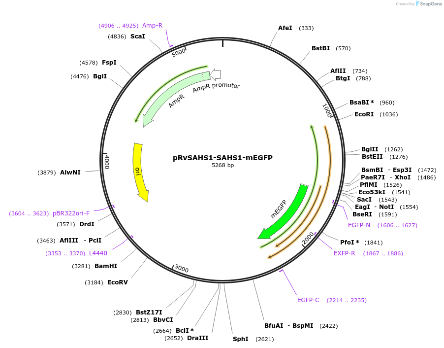 PurposeThe vector contains 1kbp of the upstream and downstream regions of the sahs1 gene from Ramazzottius varieornatus, with the RvSAHS1-mEGFP gene positioned in between.