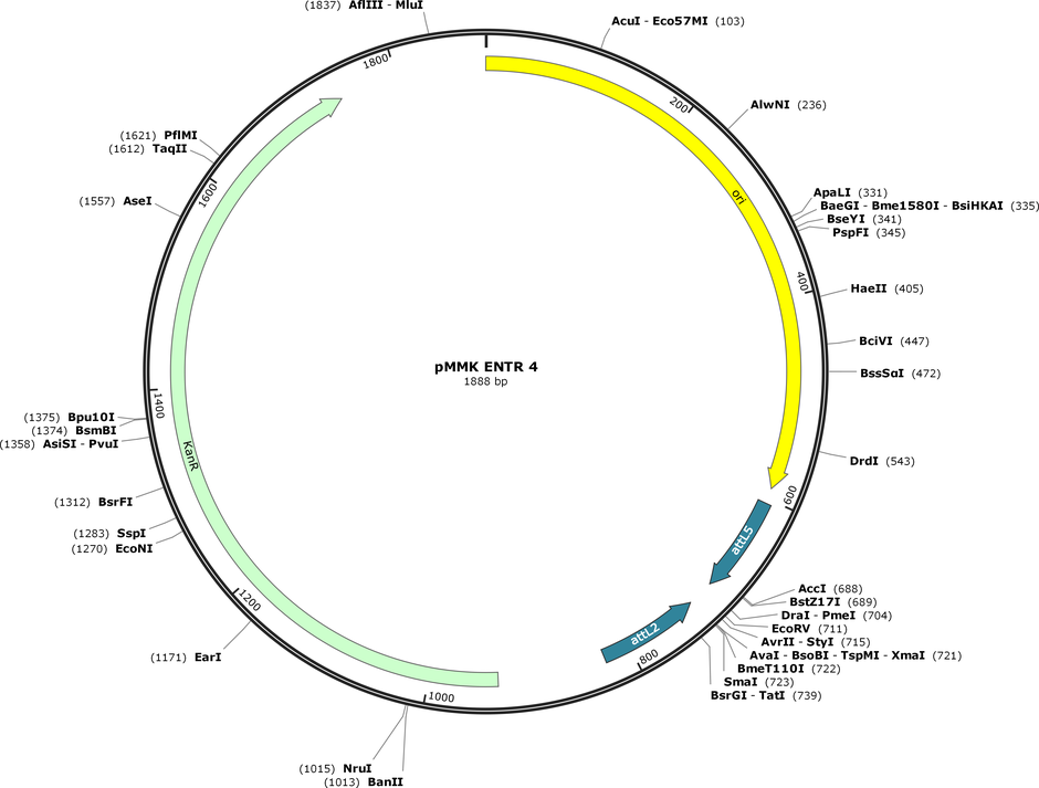 Purpose(Empty Backbone) ENTR Vector 1 for MultiSite Gateway assembly and production of recombinant baculovirus using MultiMate assembly. Empty backbone.