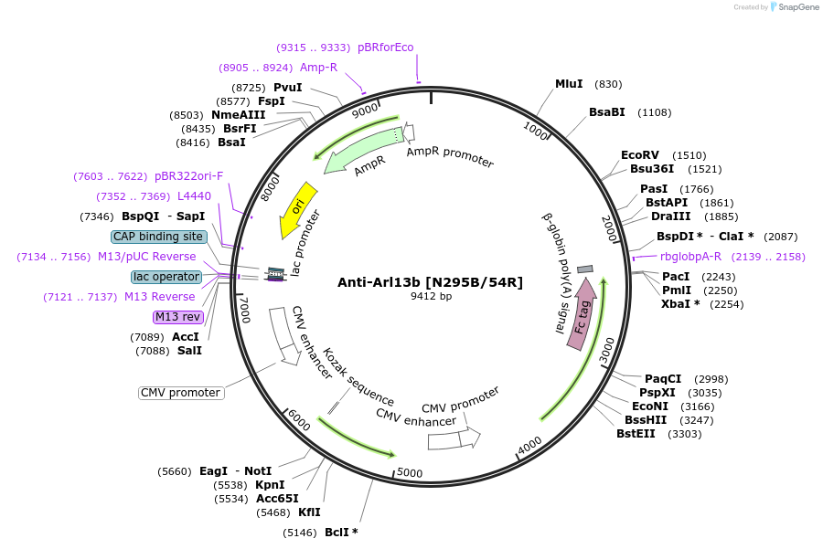 PurposeMammalian Expression Plasmid of anti-Arl13b (Mouse). Derived from hybridoma N295B/54.