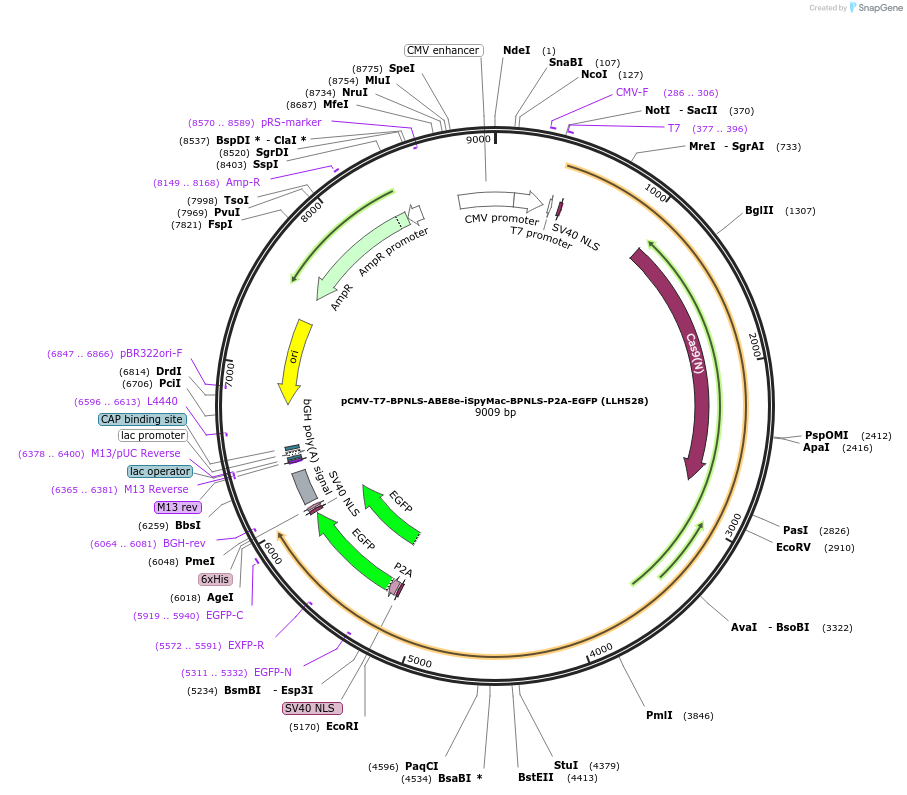 Gene/Insert namepCMV-T7-BPNLS-ABE8e-iSpyMac-BPNLS-P2A-EGFP