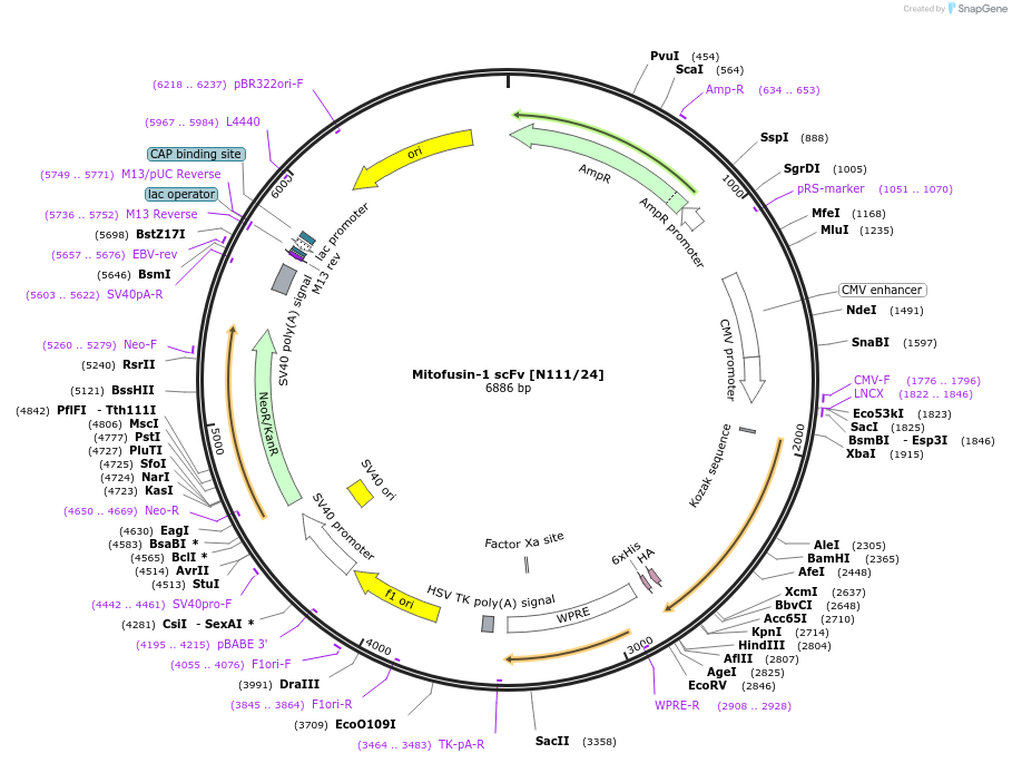 PurposeMammalian Expression Plasmid of Mitofusin-1 scFv. Derived from hybridoma N111/24.