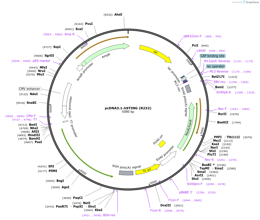 pcDNA3.1-hSTING (R232) was a gift from Nan Yan (Addgene plasmid # 214152 ; http://n2t.net/addgene:214152 ; RRID:Addgene_214152) -