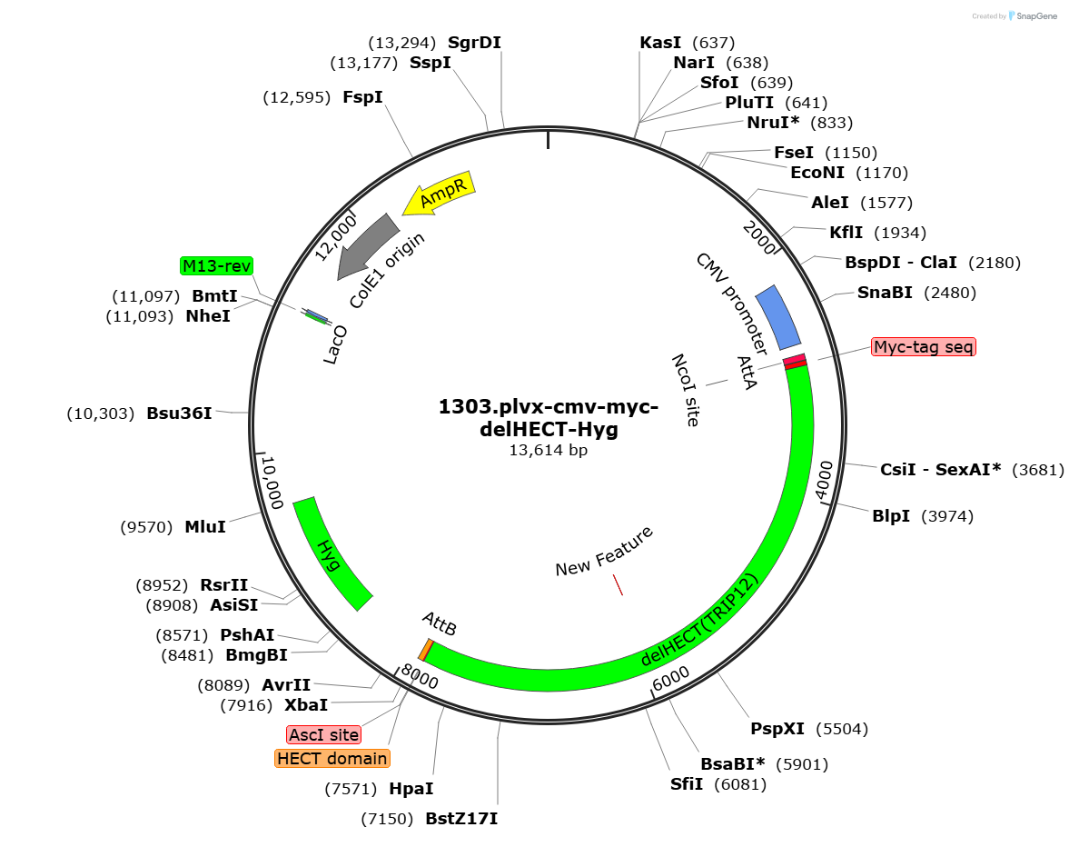 PurposeMyc-TRIP12-SB; the substrate binding (SB) domain (AA 1-1650) of TRIP12 with an N-terminal Myc-tag & a hygromycin resistance cassette