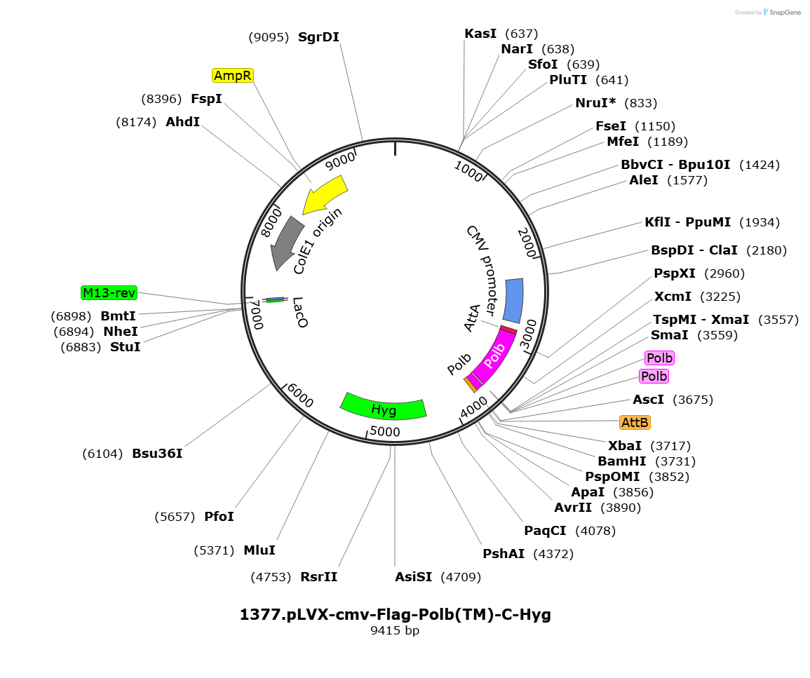 PurposeFlag-Polb(TM), C-terminal domain (AA 91-335) & a hygromycin resistance cassette; TM = L301R/V303R/V306R