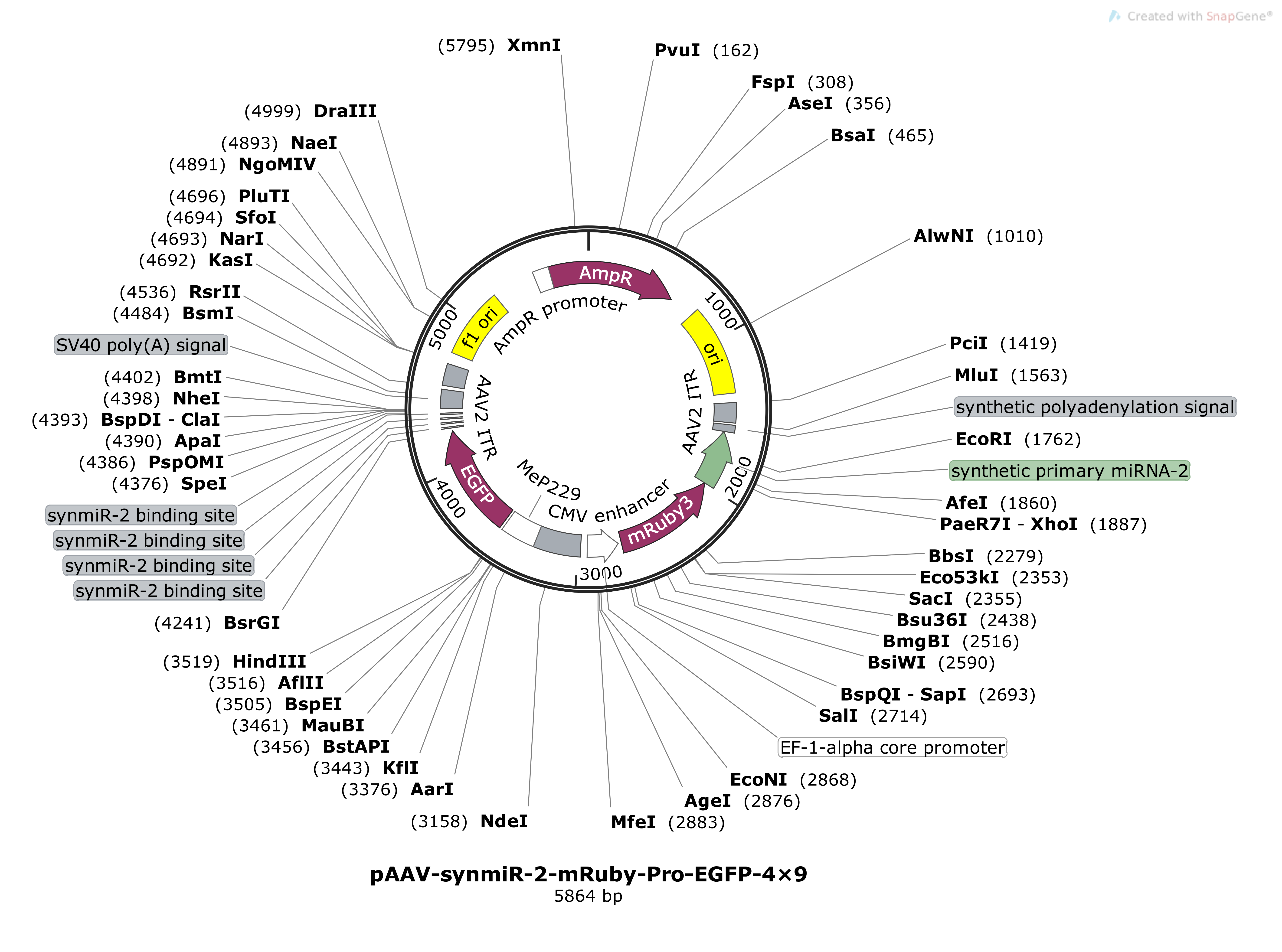 pAAV-synmiR-2-mRuby-Pro-EGFP-4×9