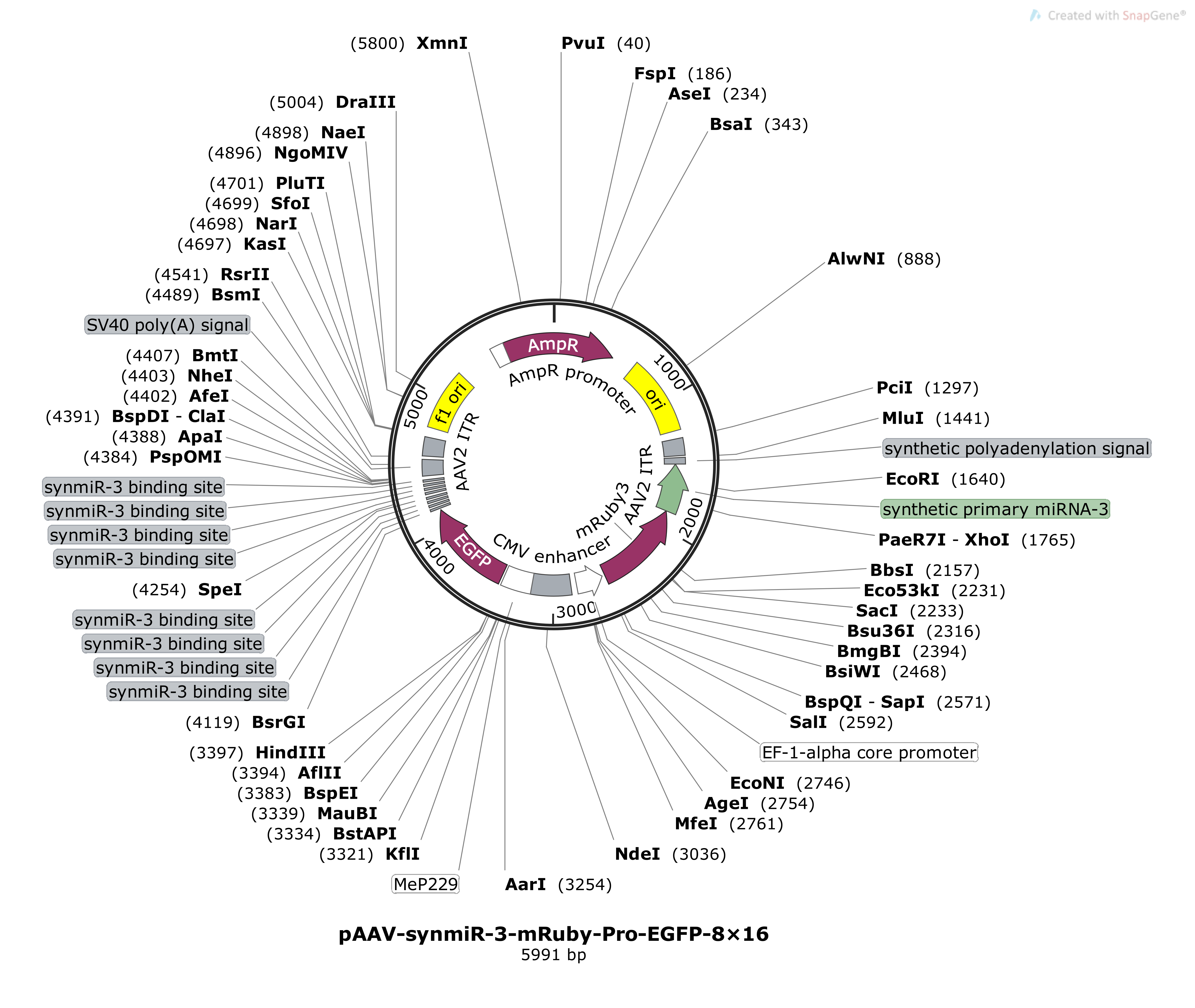 pAAV-synmiR-3-mRuby-Pro-EGFP-8×16