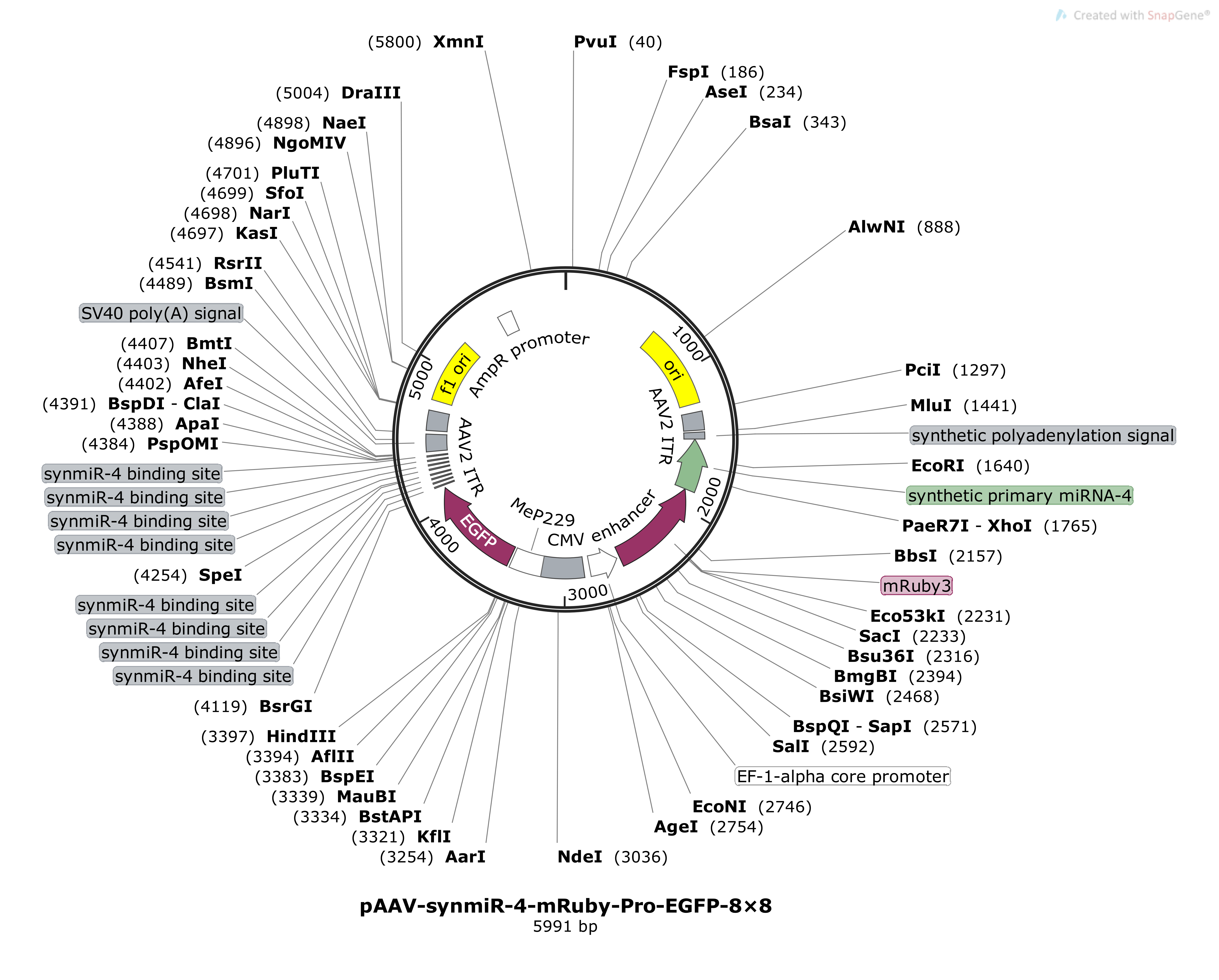 pAAV-synmiR-4-mRuby-Pro-EGFP-8×8