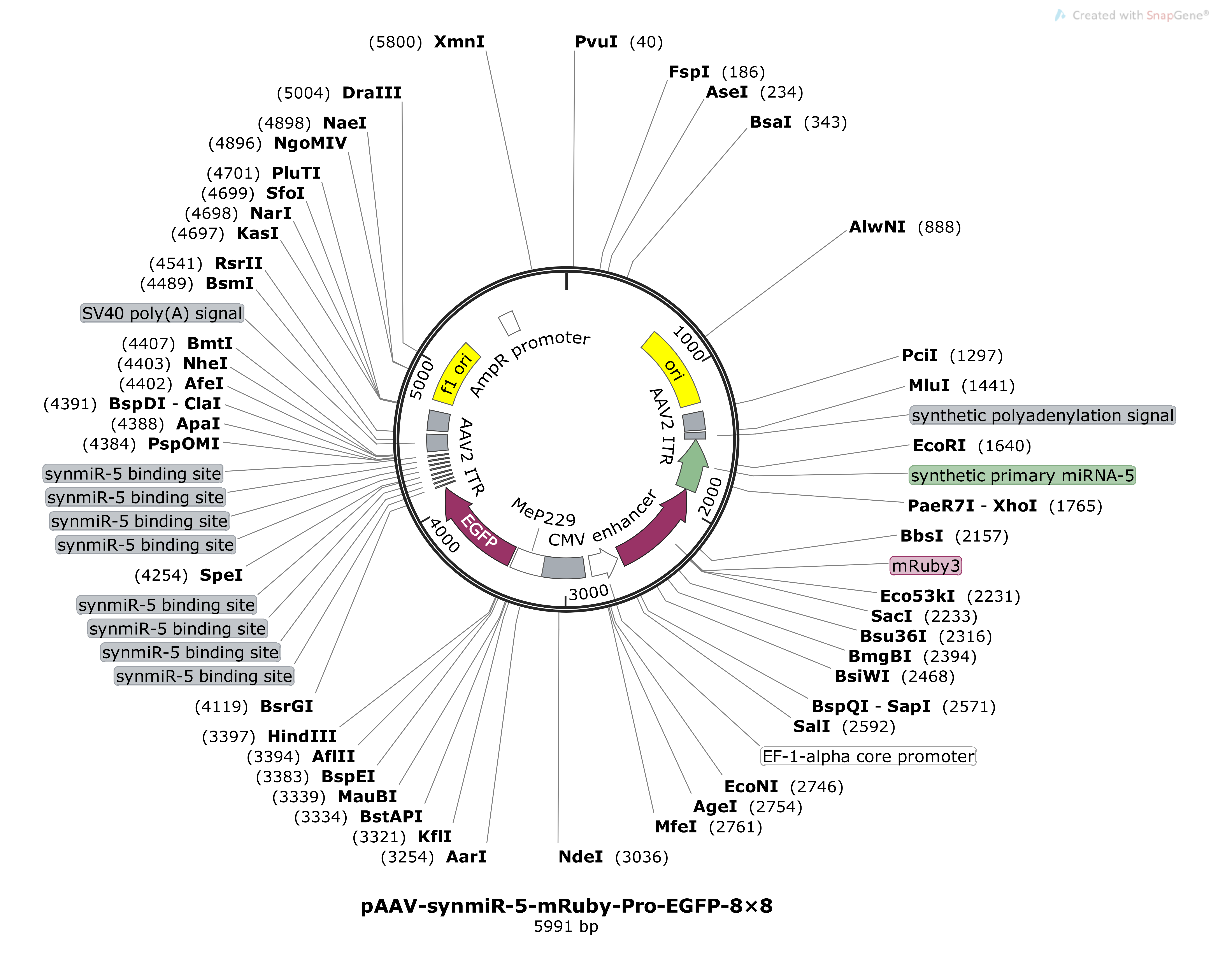 pAAV-synmiR-5-mRuby-Pro-EGFP-8×8