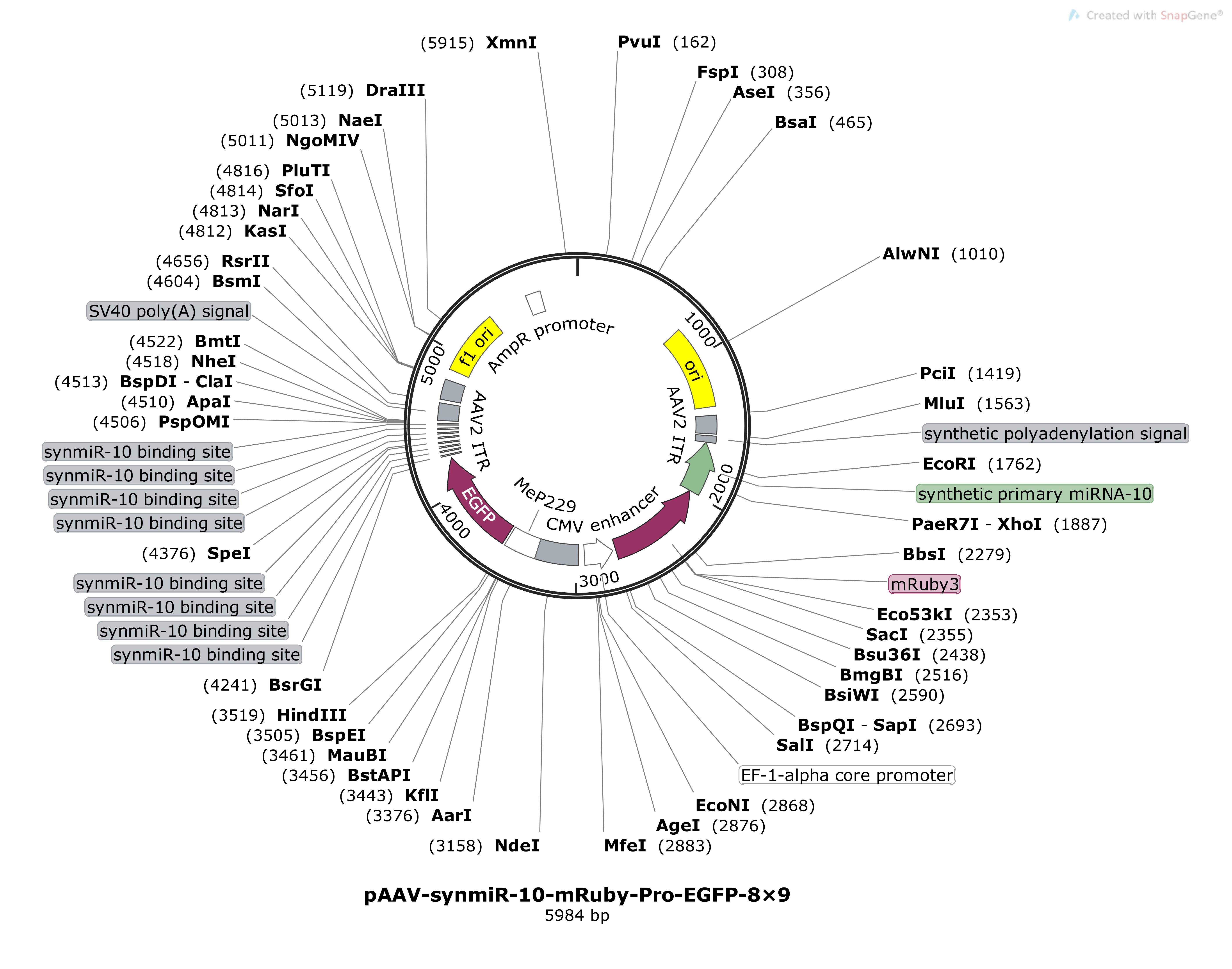 pAAV-synmiR-10-mRuby-Pro-EGFP-8×9