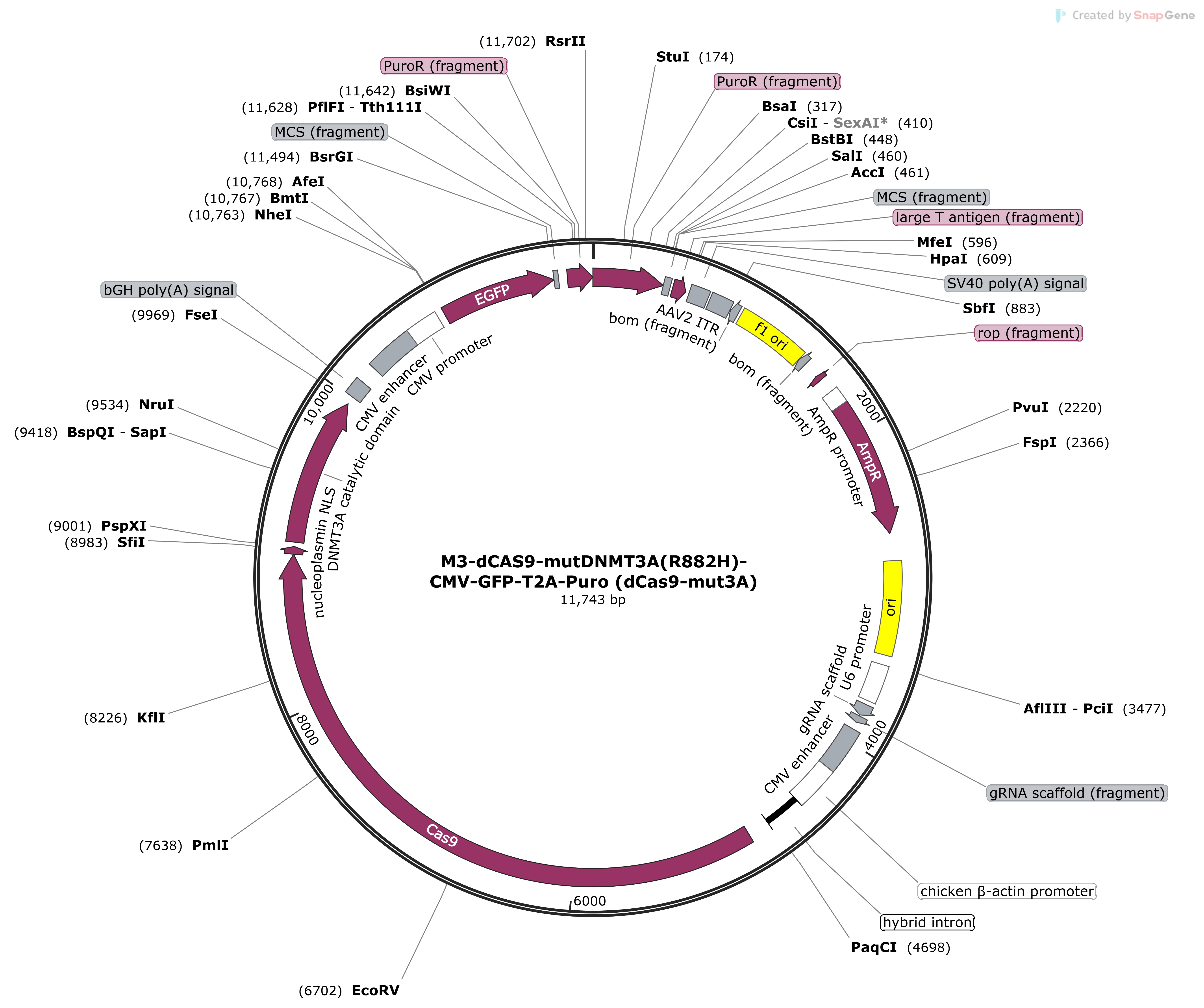 PurposeExpresses dCAS9- R882H Mutated DNMT3A fusion protein and double marker GFP-T2A-Puro under independent promoters