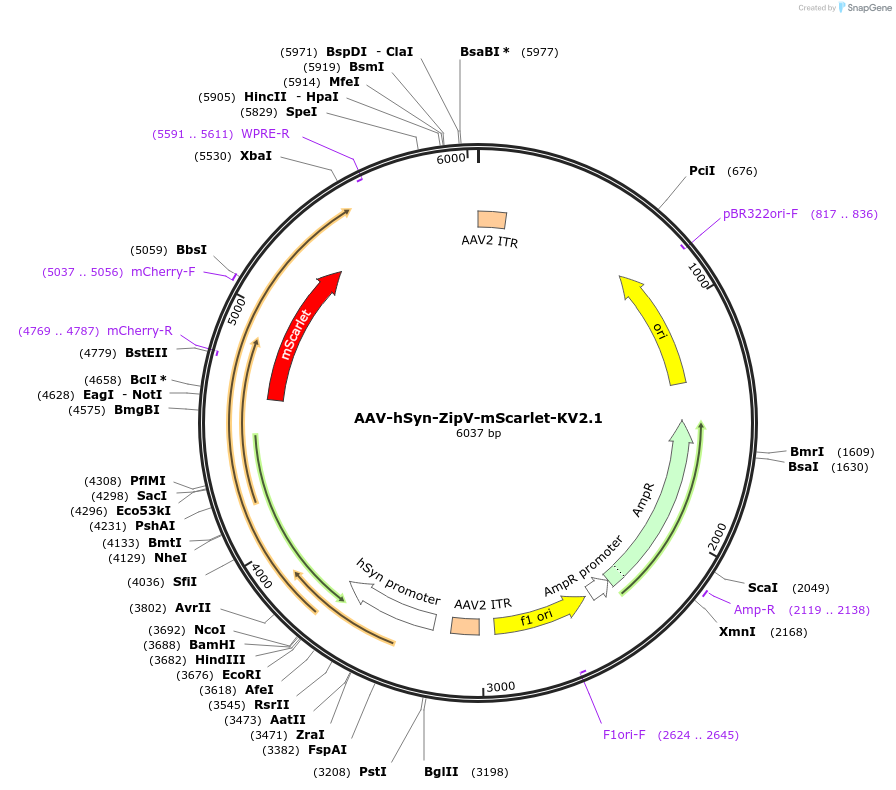 AAV-hSyn-ZipV-mScarlet-KV2.1