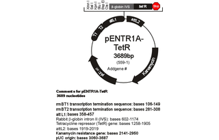 A portion of this plasmid was derived from a plasmid made byTetR cDNA was derived from the pLenti 6/TR plasmid (Invitrogen).
