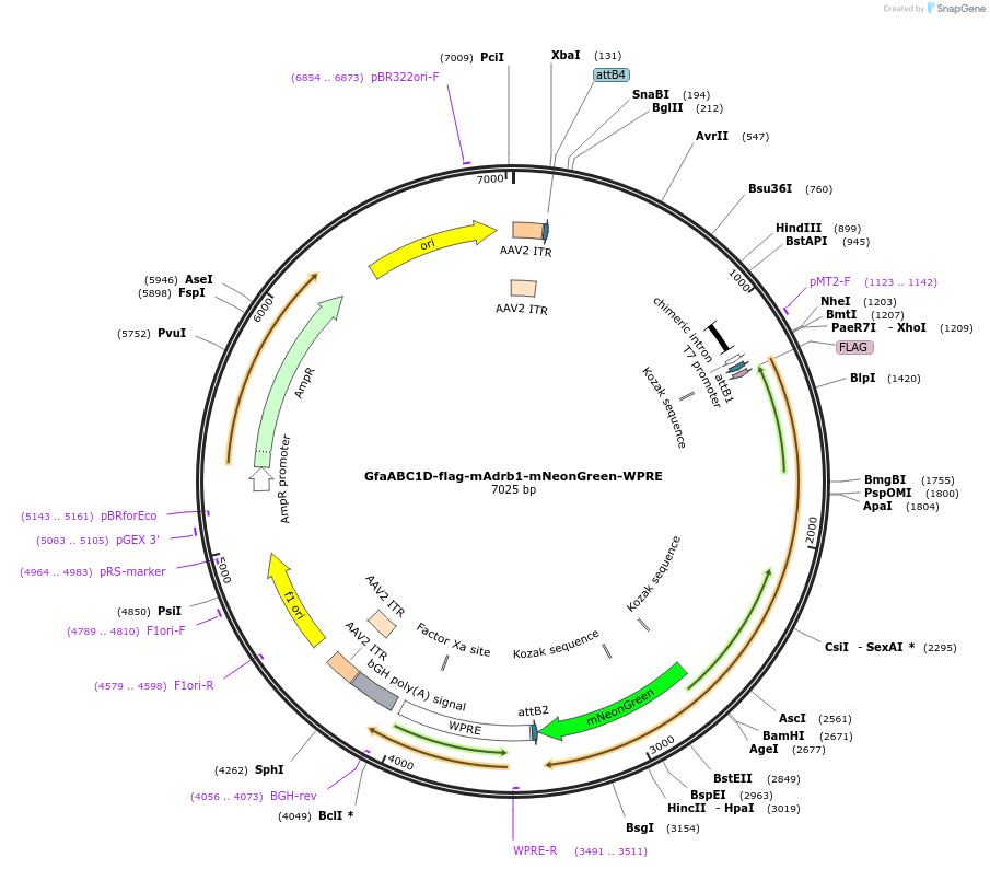 PurposeAAV expression of flag-mAdrb1-mNeonGreen from GfaABC1D promoter