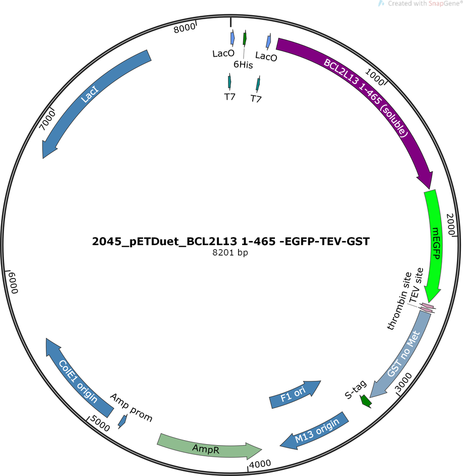 pETDuet1_BCL2L13(1-465aa)-EGFP-TEV-GST