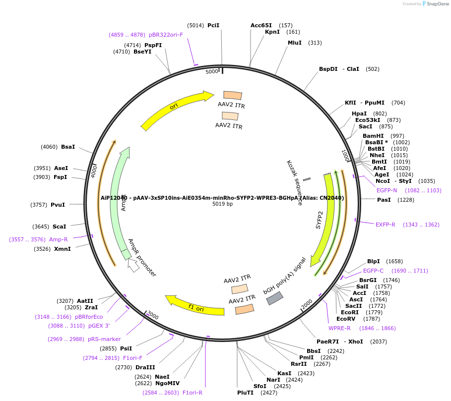 AiP12040 - pAAV-3xSP10ins-AiE0354m-minRho-SYFP2-WPRE3-BGHpA (Alias: CN2040)