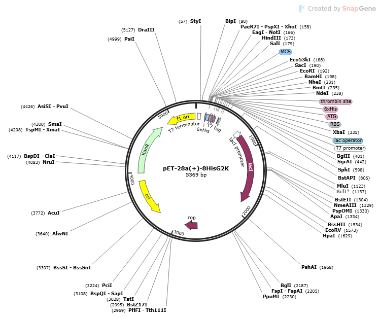 pET28a(+)-8HisG2K was a gift from Gregory Challis (Addgene plasmid # 225540 ; http://n2t.net/addgene:225540 ; RRID:Addgene_225540)