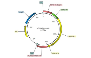 PurposeExpresses a color marker (uidA) cassette for disruption on KU70 gene in K. phaffii.
