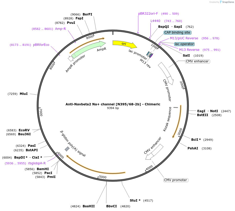 PurposeMammalian expression plasmid of anti-Navbeta2 Na+ channel (Mouse). Derived from hybridoma N395/68.