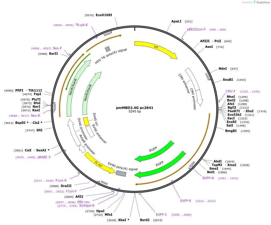 PurposeMammalian expression vector codes for MBD2(aa 235-414) fused c-terminal to GFP.