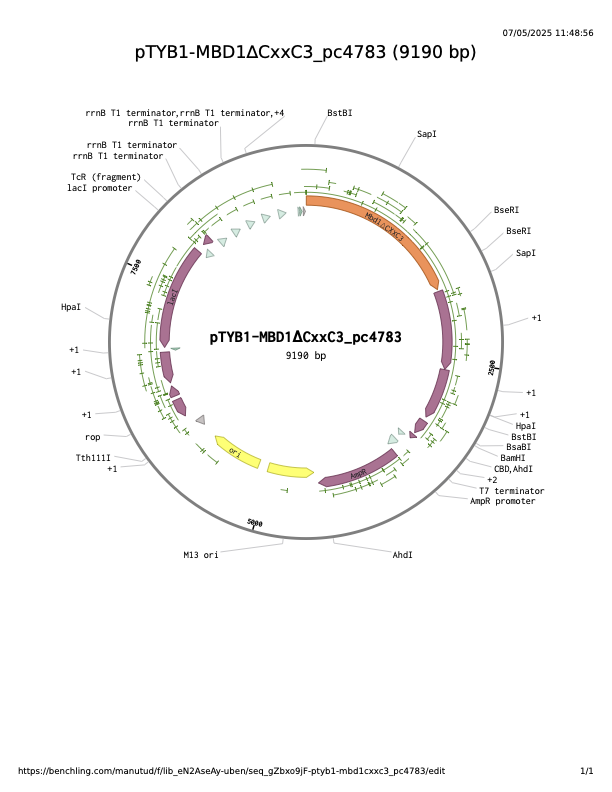pTYB1-MBD1∆CxxC3 pc4783 was a gift from Cristina Cardoso (Addgene plasmid # 229748 ; http://n2t.net/addgene:229748 ; RRID:Addgene_229748)