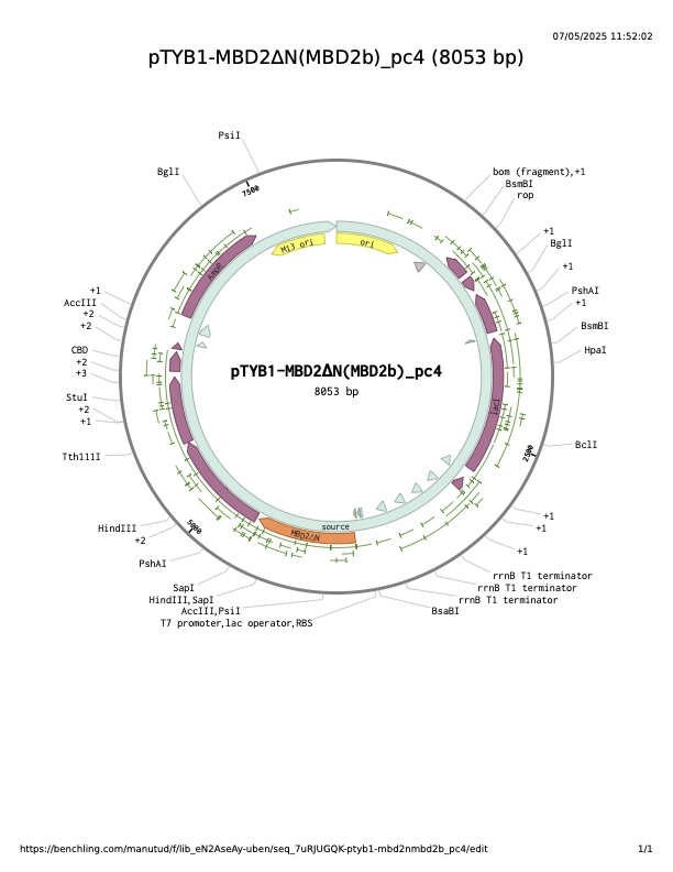 pTYB1-MBD2∆N(MBD2b) pc4787 was a gift from Cristina Cardoso (Addgene plasmid # 229752 ; http://n2t.net/addgene:229752 ; RRID:Addgene_229752)