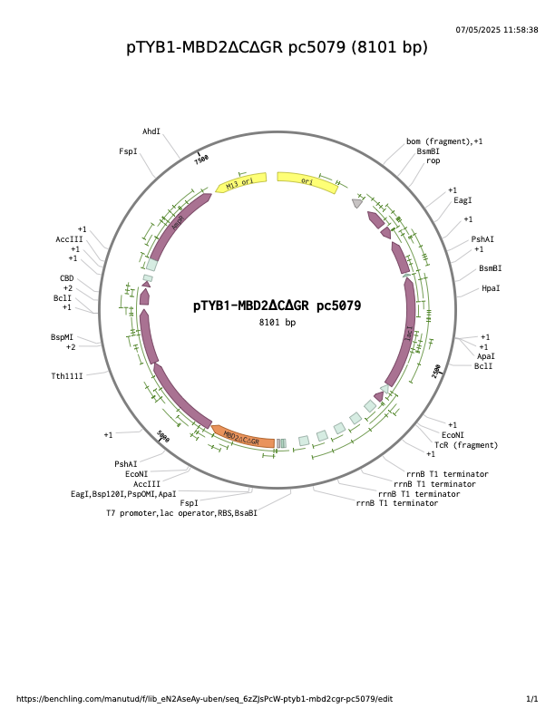 pTYB1-MBD2∆C∆GR pc5079
