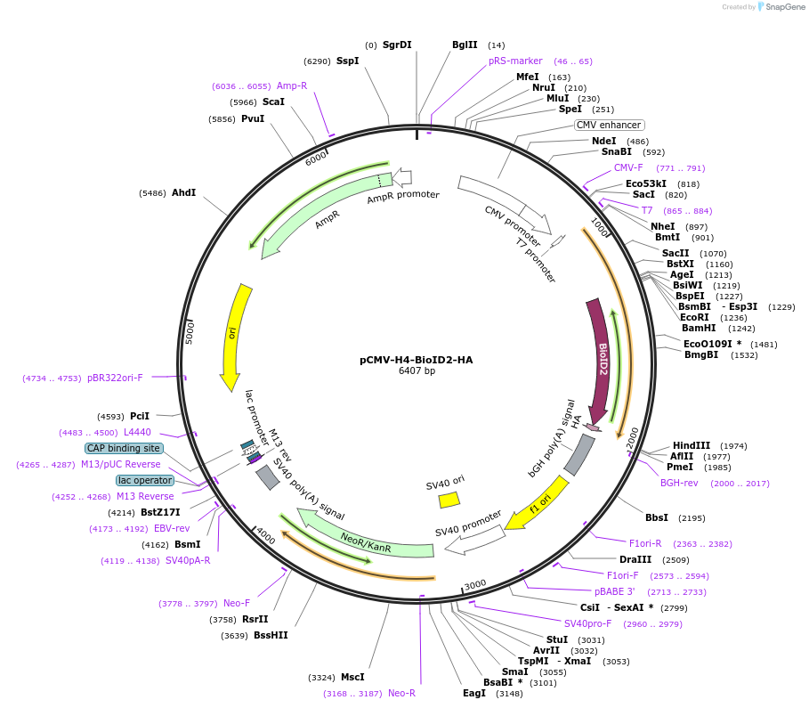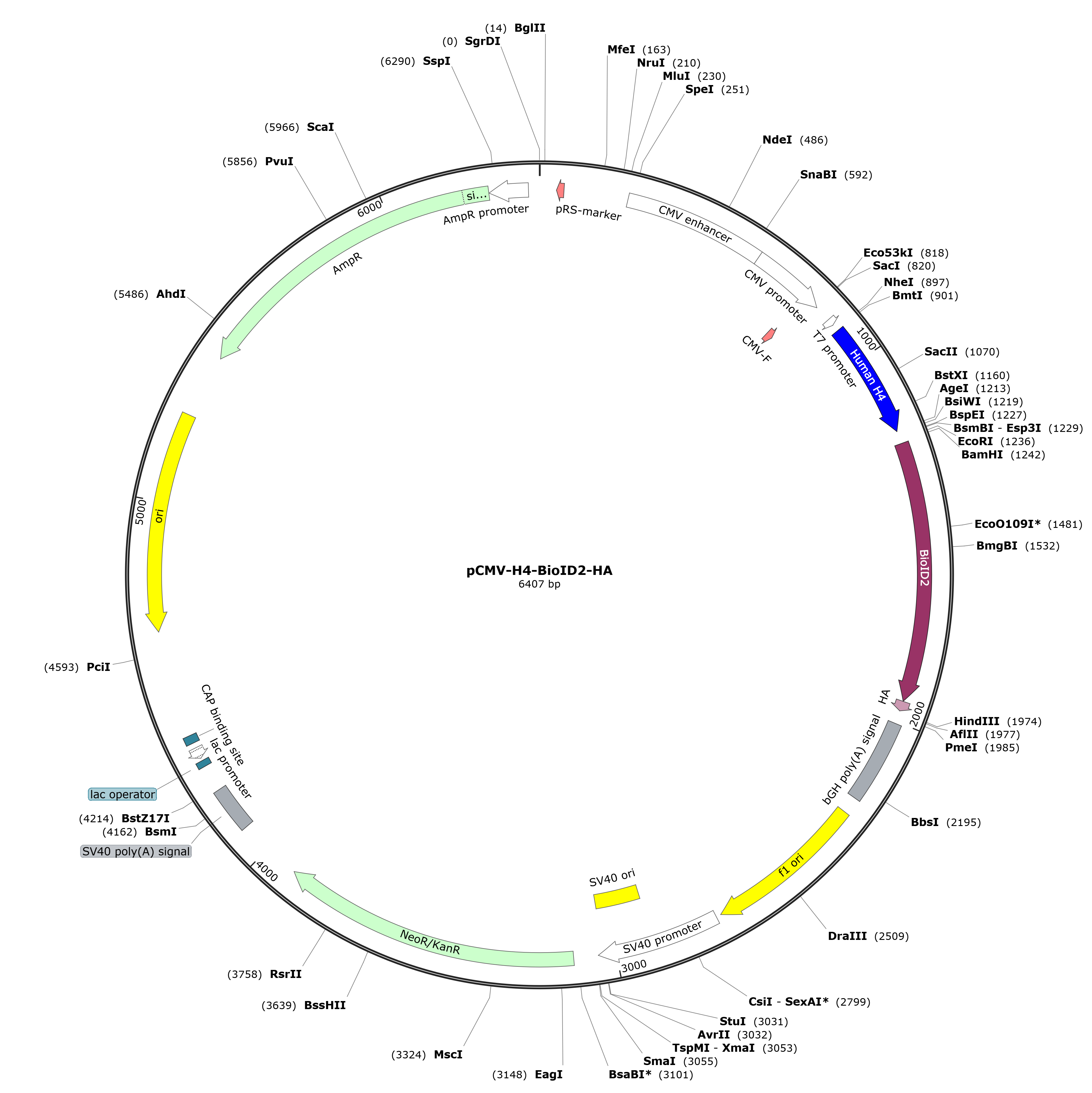 Purposemammalian expression (CMV promoter) of histone H4 fused to BioID2-HA