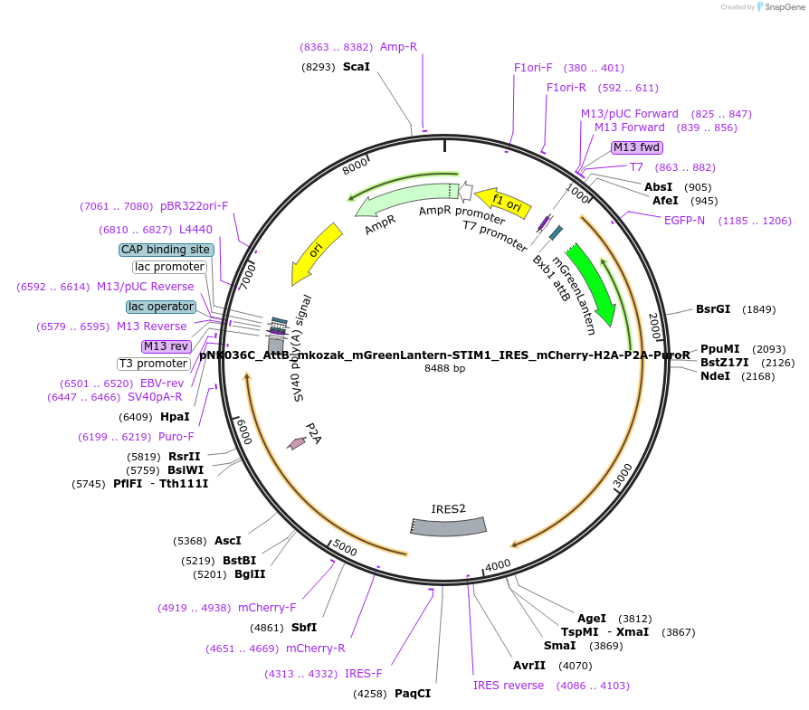 pNK036C_AttB_mkozak_mGreenLantern-STIM1_IRES_mCherry-H2A-P2A-PuroR