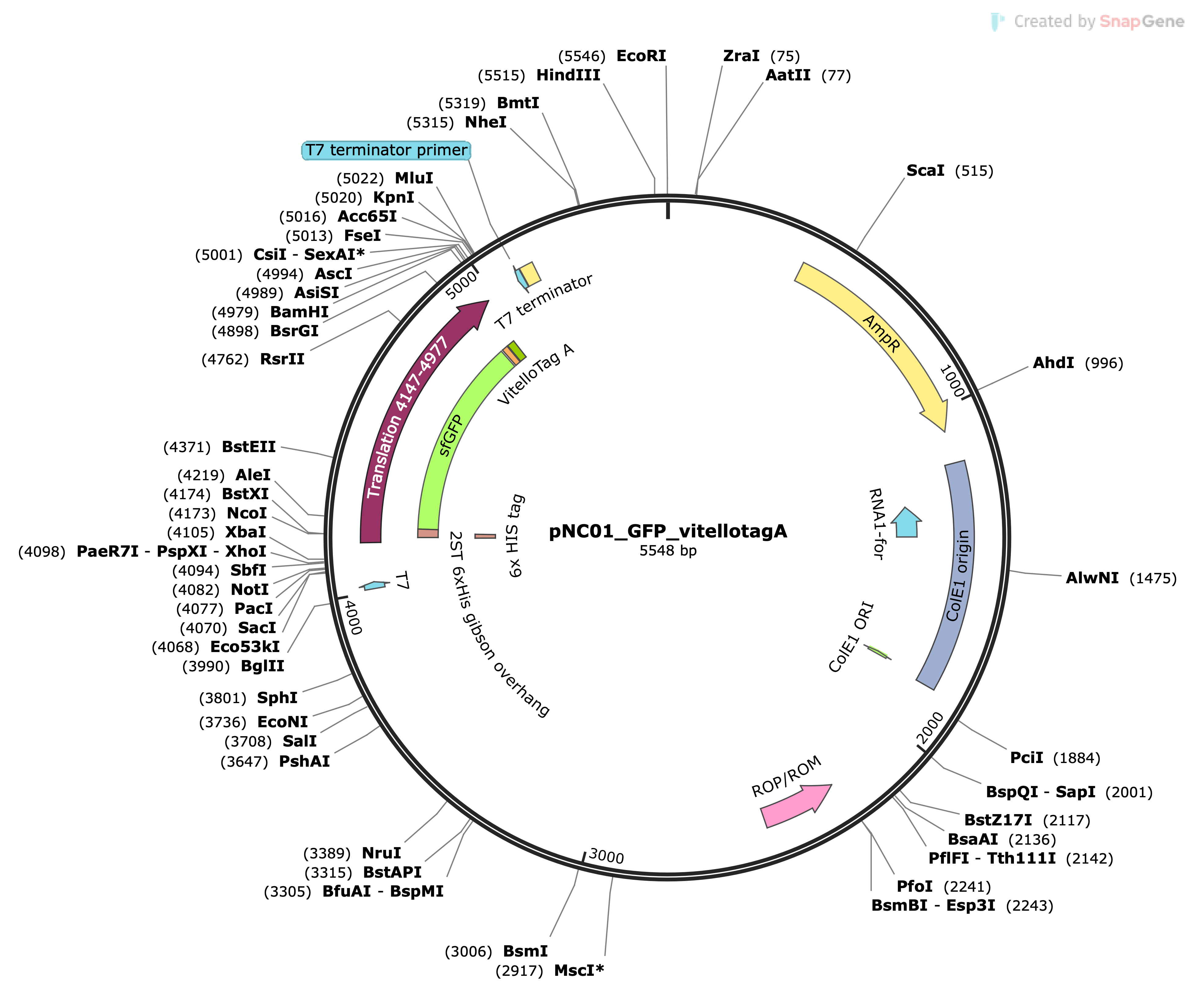 PurposeFor bacterial expression of sfGFP c-terminally tagged with VitelloTagA.