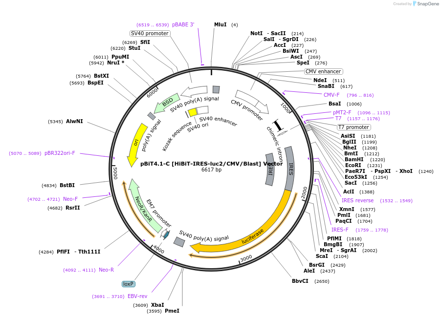 Vector backbonepBiT4.1-C [CMV/HiBiT/Blast] Vector
