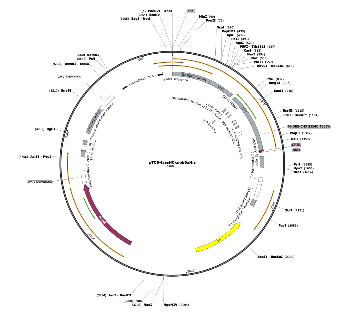 PurposepTwist CMV BetaGlobin encoding trastuzumab heavy chain with knob Fc and 6xHis tag