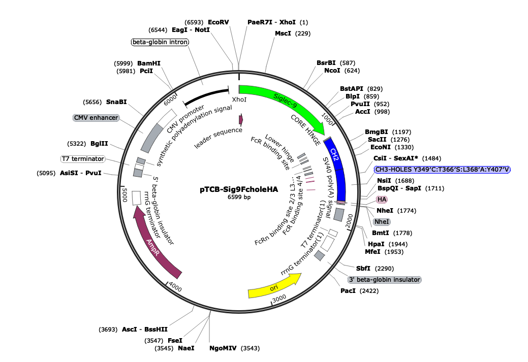 PurposepTwist CMV BetaGlobin encoding Siglec-9-Fc with hole Fc and HA tag