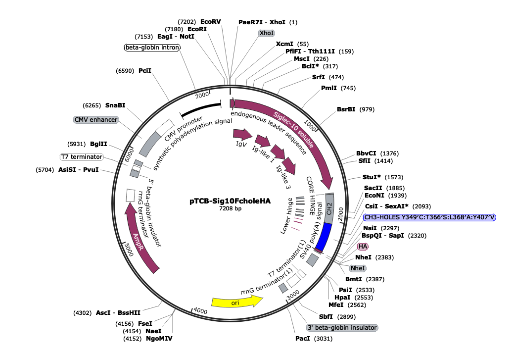 PurposepTwist CMV BetaGlobin encoding Siglec-10-Fc with hole Fc and HA tag