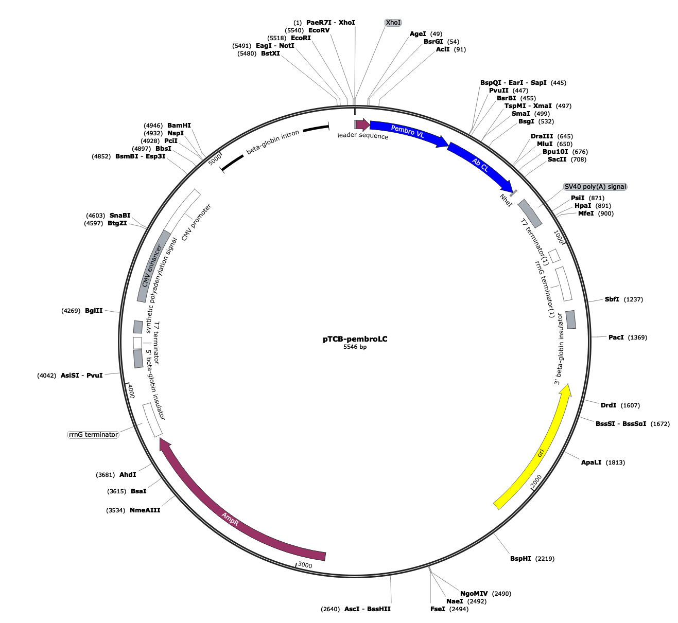 PurposepTwist CMV BetaGlobin encoding pembrolizumab light chain