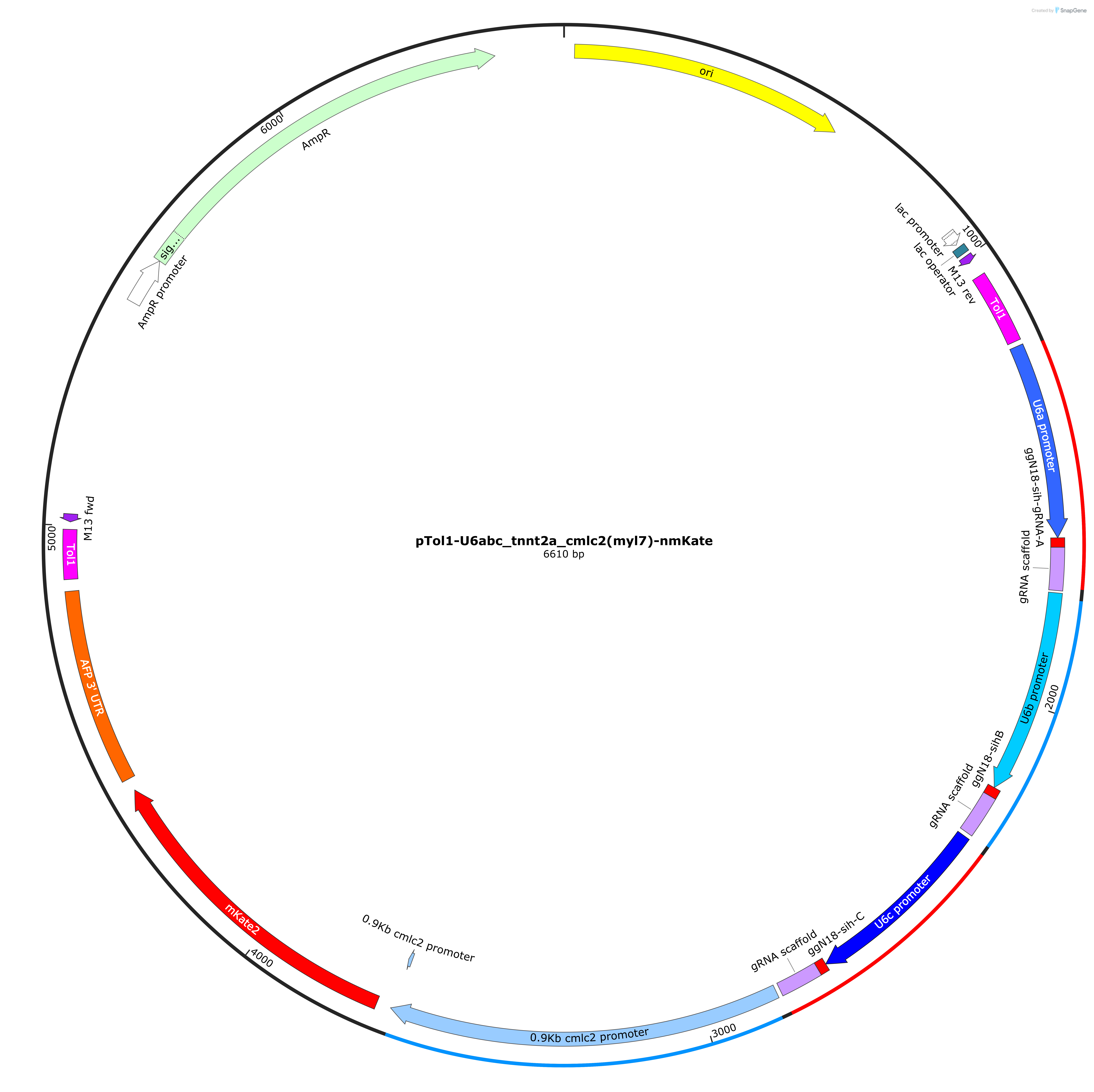 pTol1-U6abc_tnnt2a_cmlc2-nmKate