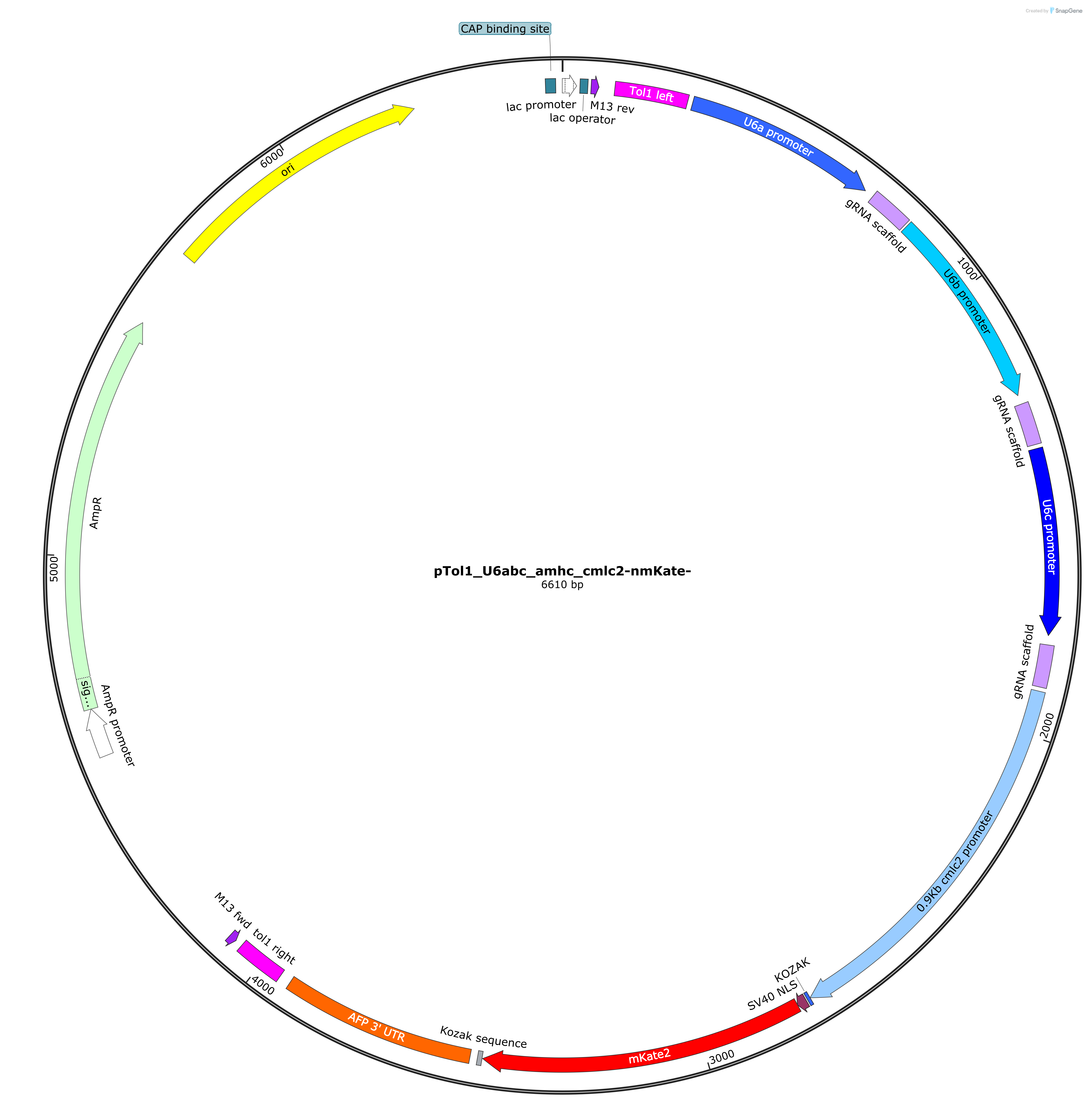 pTol1-U6abc_amhc(myh6)_cmlc2-nmKate