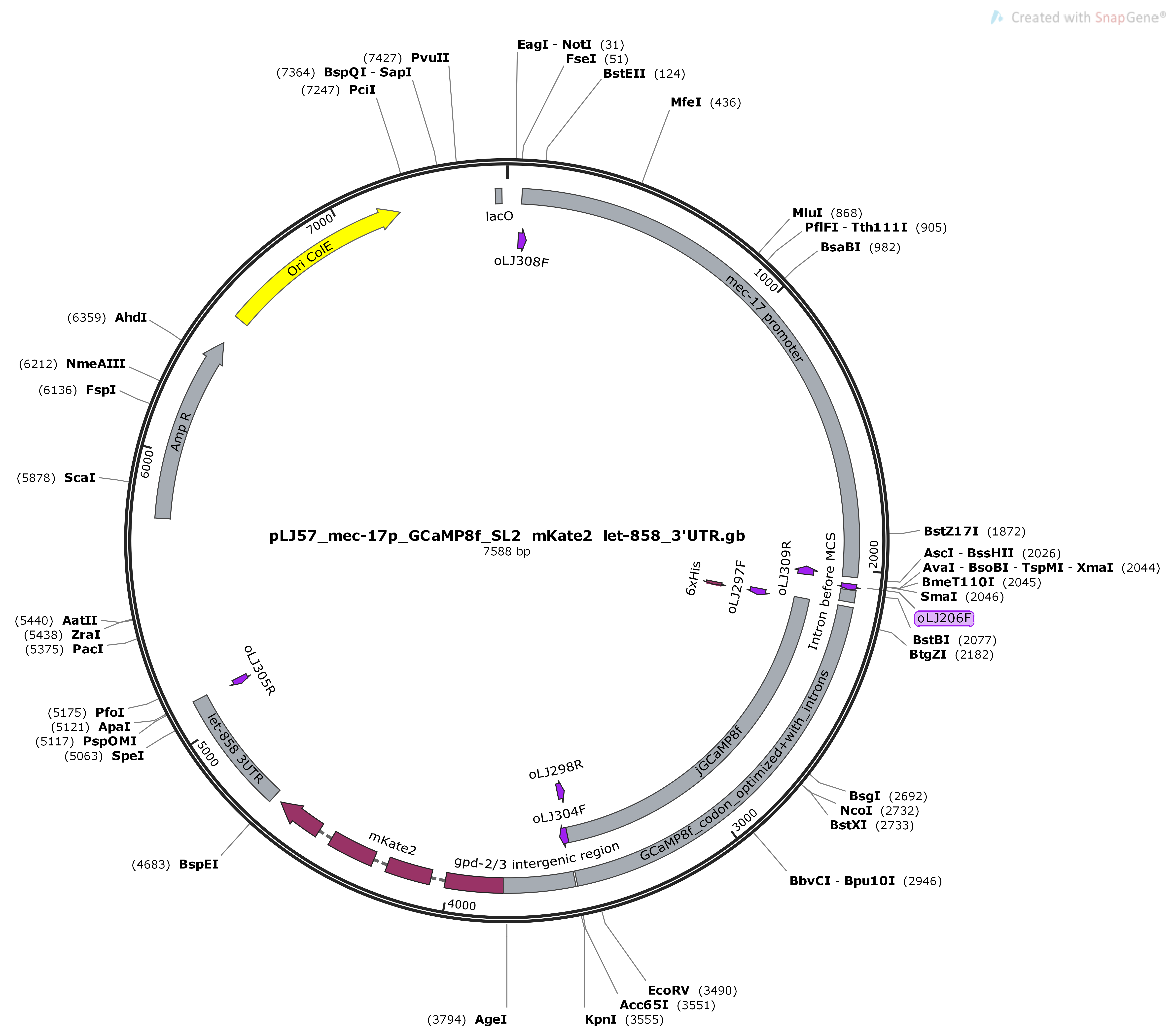 pLJ57 (Pmec-17_GCaMP8f_SL2_mKate2_let-858_3'UTR)