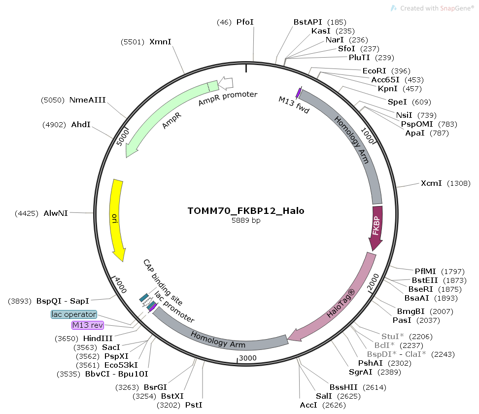 TOMM70-FKBP12-Halo donor plasmid was a gift from Derek Narendra (Addgene plasmid # 239867 ; http://n2t.net/addgene:239867 ; RRID:Addgene_239867) -