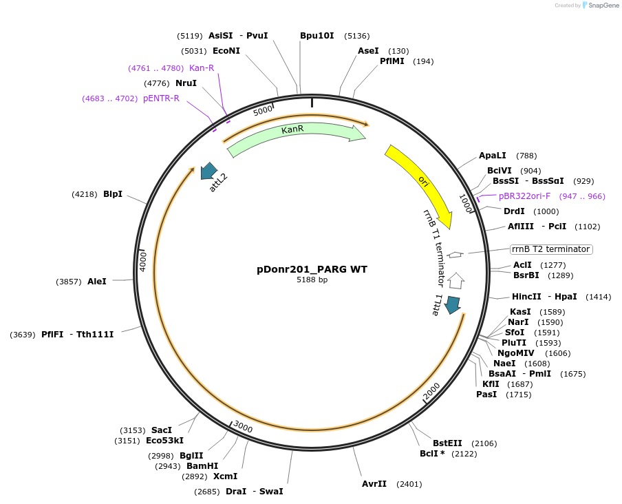 pDonr201_PARG WT was a gift from Junjie Chen (Addgene plasmid # 240315 ; http://n2t.net/addgene:240315 ; RRID:Addgene_240315) -