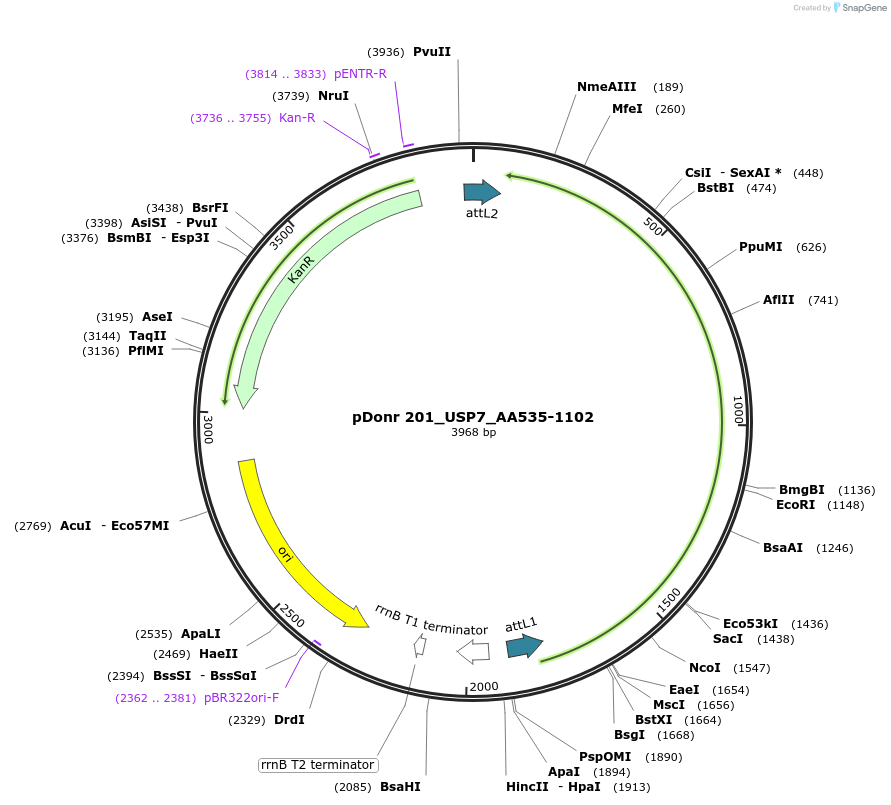 pDonr 201_USP7_AA535-1102 was a gift from Junjie Chen (Addgene plasmid # 240324 ; http://n2t.net/addgene:240324 ; RRID:Addgene_240324) -