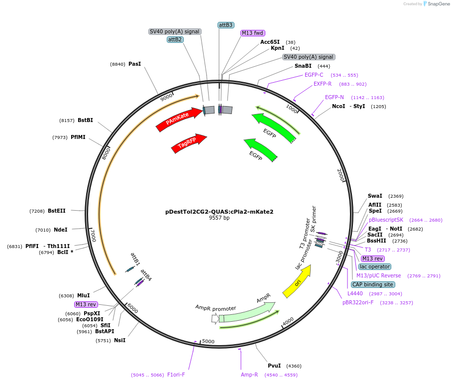 pDestTol2CG2-QUAS:cPla2-mKate2