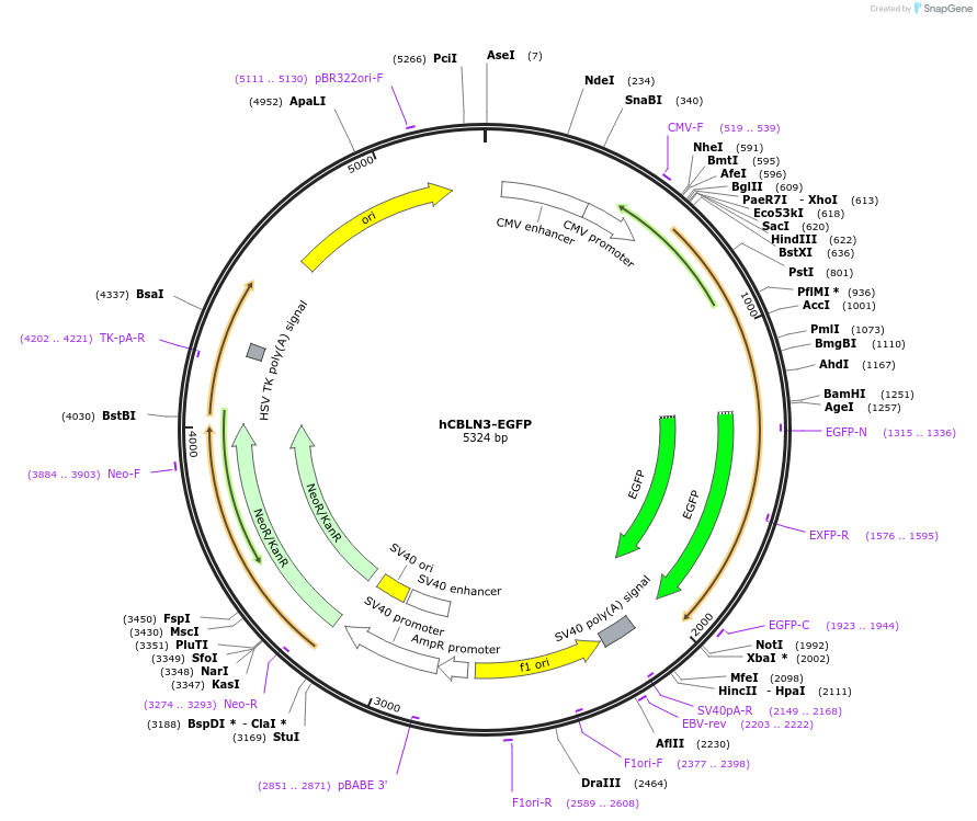 Purposemammalian expression construct for human cerebellin 3 precursor C-terminally tagged with EGFP