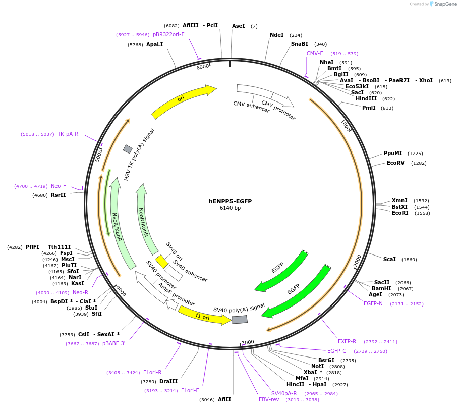 Purposemammalian expression construct for human ectonucleotide pyrophosphatase/phosphodiesterase family member 5 C-terminally tagged with EGFP