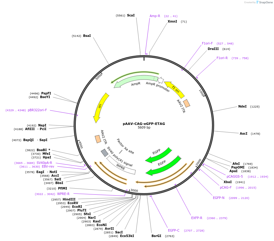 PurposeAAV transfer plasmid expressing eGFP-ETAG under a CAG promoter.