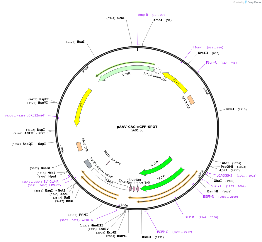 PurposeAAV transfer plasmid expressing eGFP-SPOT under a CAG promoter.
